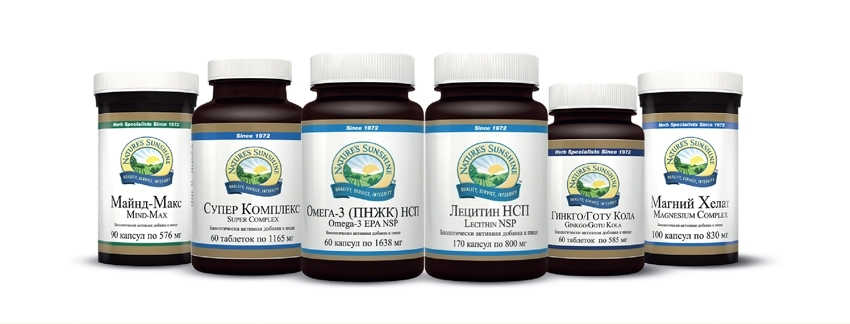 Следует подчеркнуть, что витамины группы В благотворно влияют на многие мозговые функции: улучшают память, мышление, обостряют восприятие информации и повышают внимание, а также эффективно снимают стресс, возбуждение, купируют депрессивный синдром. Такое же действие оказывают: Омега-3 ПНЖК, лецитин, целый ряд аминокислот (триптофан, глицин, глутамат, серин, тирозин, таурин), готу кола, бакопа, гуарана, женьшень, элеутерококк. Нейропротективным действием обладают и другие пищевые и фито ингредиенты.