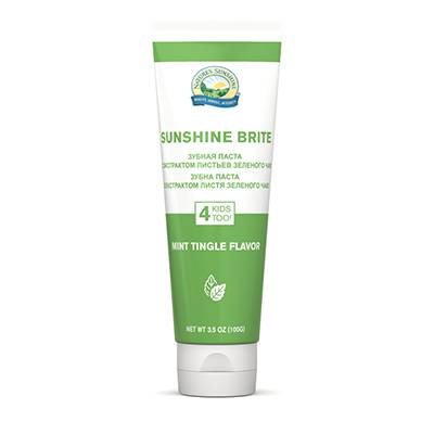 В состав зубной пасты Саншайн Брайт с экстрактом листьев зеленого чая входит целый набор растительных компонентов, оказывающих положительное влияние на полость рта: